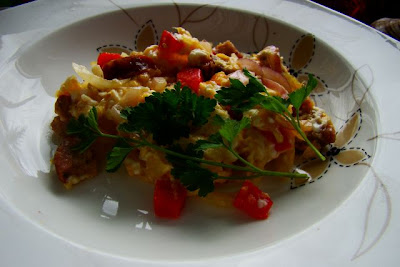 jajecznica z chorizo i papryka czerwoną ,sobotnie śniadanko